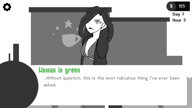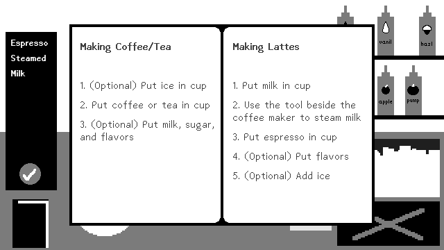 It's hard to start your life over, especially when you're starting in a new place with nothing to your name. But via a stroke of luck, you landed a position at a prestigious coffee shop downtown. The pay is great, the hours are consistent, and if you can keep up with the workload you should be able to rent a place nearby in no time at all. Things are looking up!
